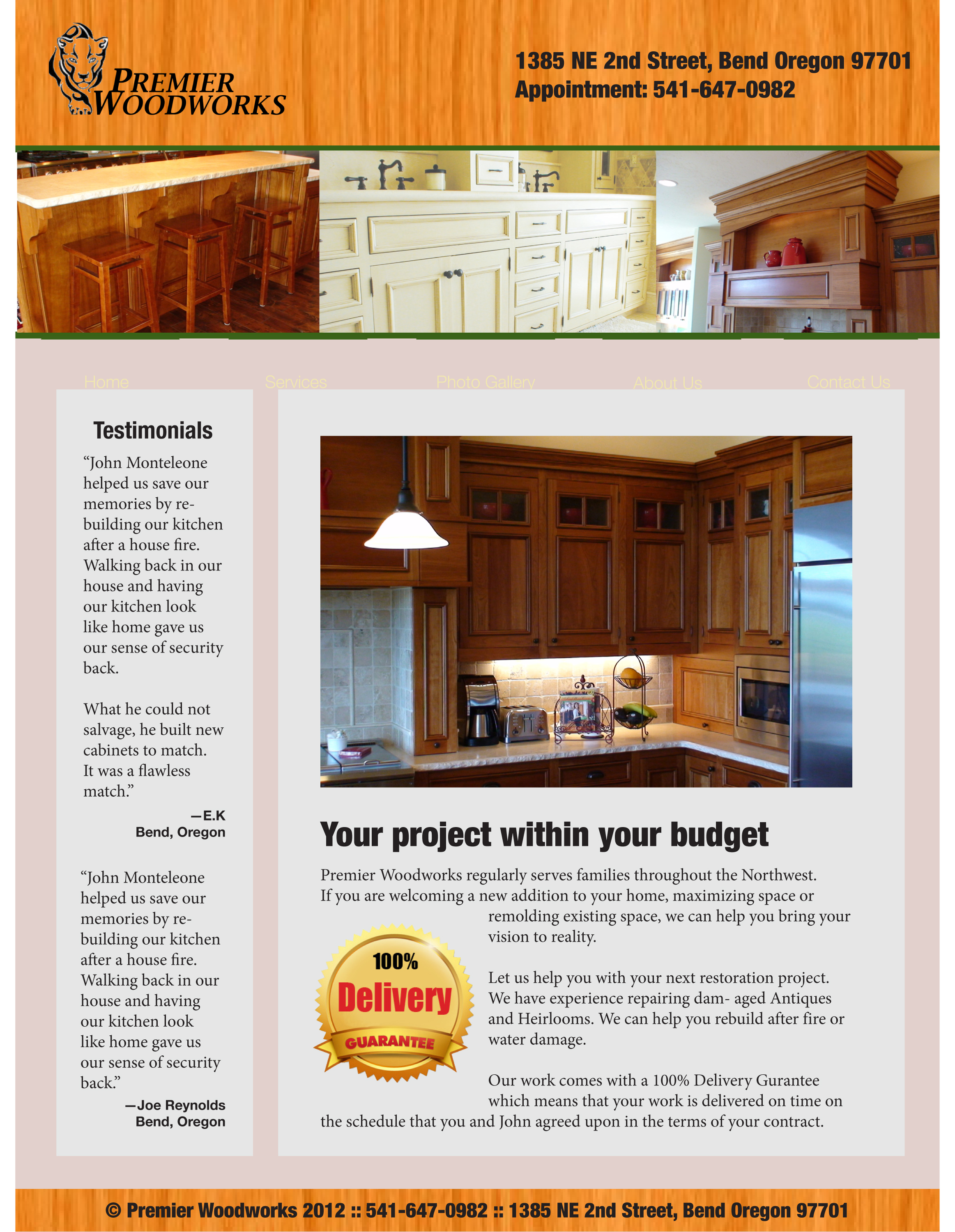 Challenge: How do we create a site for locals in Bend, Ore. that would get potential new clients to pick up the phone and make an appointment? We decided that answering all their questions from products, experience, quality and ability to deliver on time, which were they key questions that customers wanted to know according to our customer analysis.